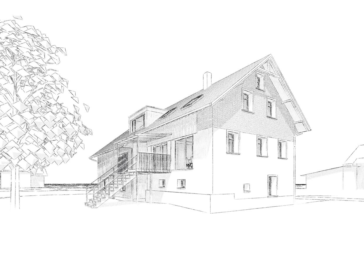 Beim bestehenden Wohnhaus in Diepoldsau sorgen Pfahlfundamente dafür, dass das Gebäude dauerhaft setzungsfrei bleibt. Der angrenzende Stall hingegen war bislang nicht auf stabilem Untergrund gegründet und senkte sich zunehmend ab.